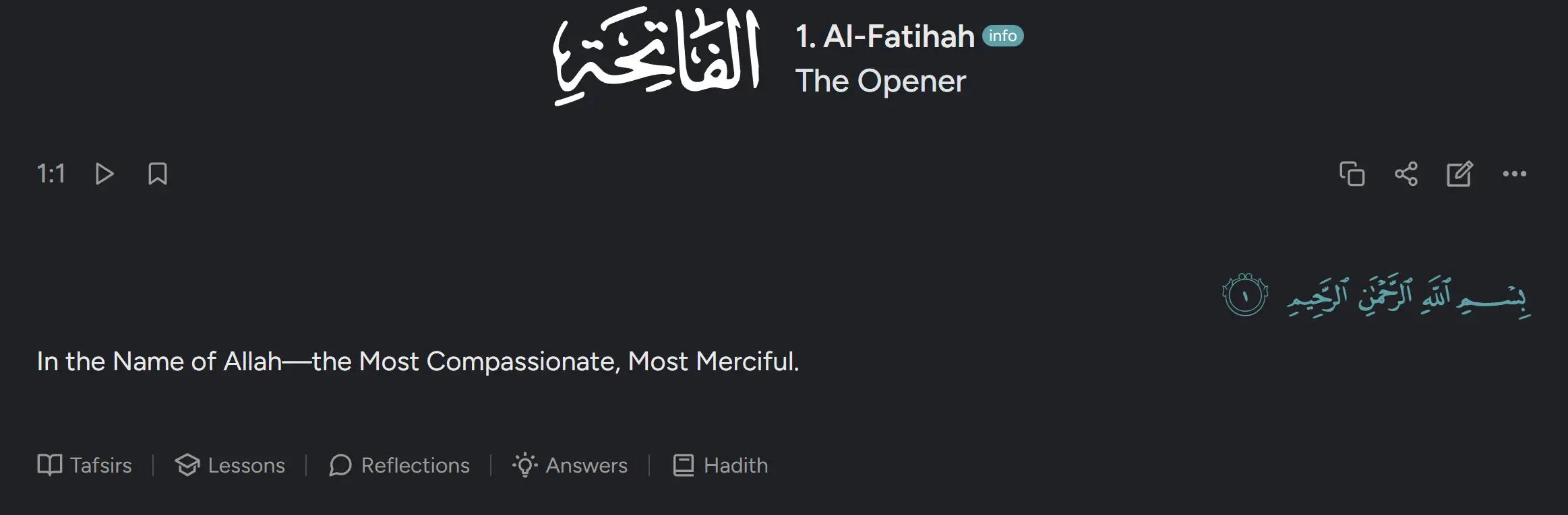 Click on any ayah number while reading to try it now!